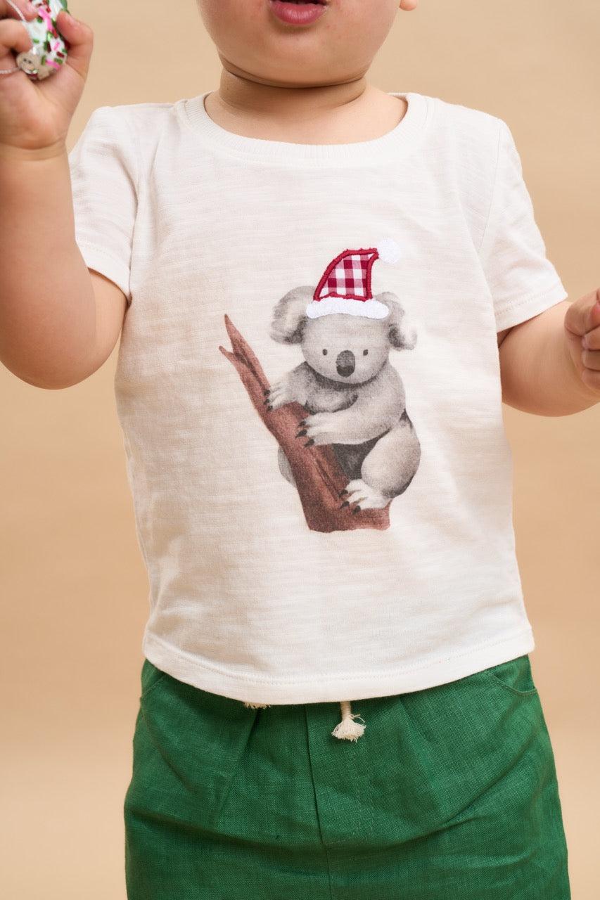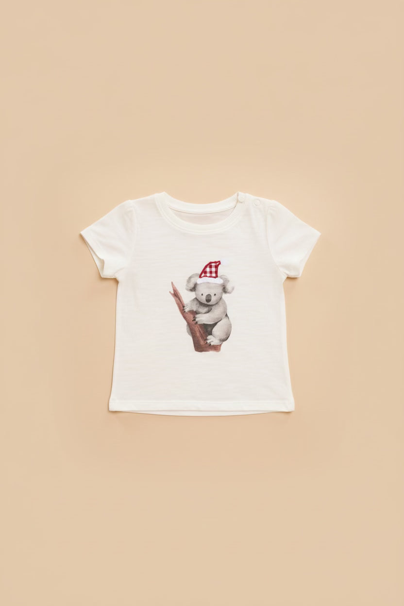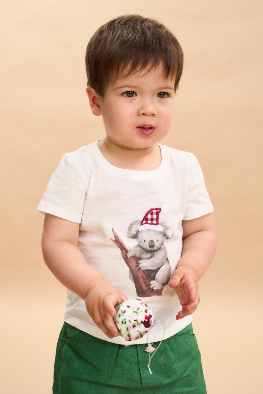 The Embroidered Christmas Tee puts its festive charm front and center, featuring a hand-illustrated koala brought to life with a textured embroidered Santa hat. Crafted from soft, breathable cotton, it’s a lightweight everyday staple made for holiday outings, cosy moments, and all the excitement of the season.