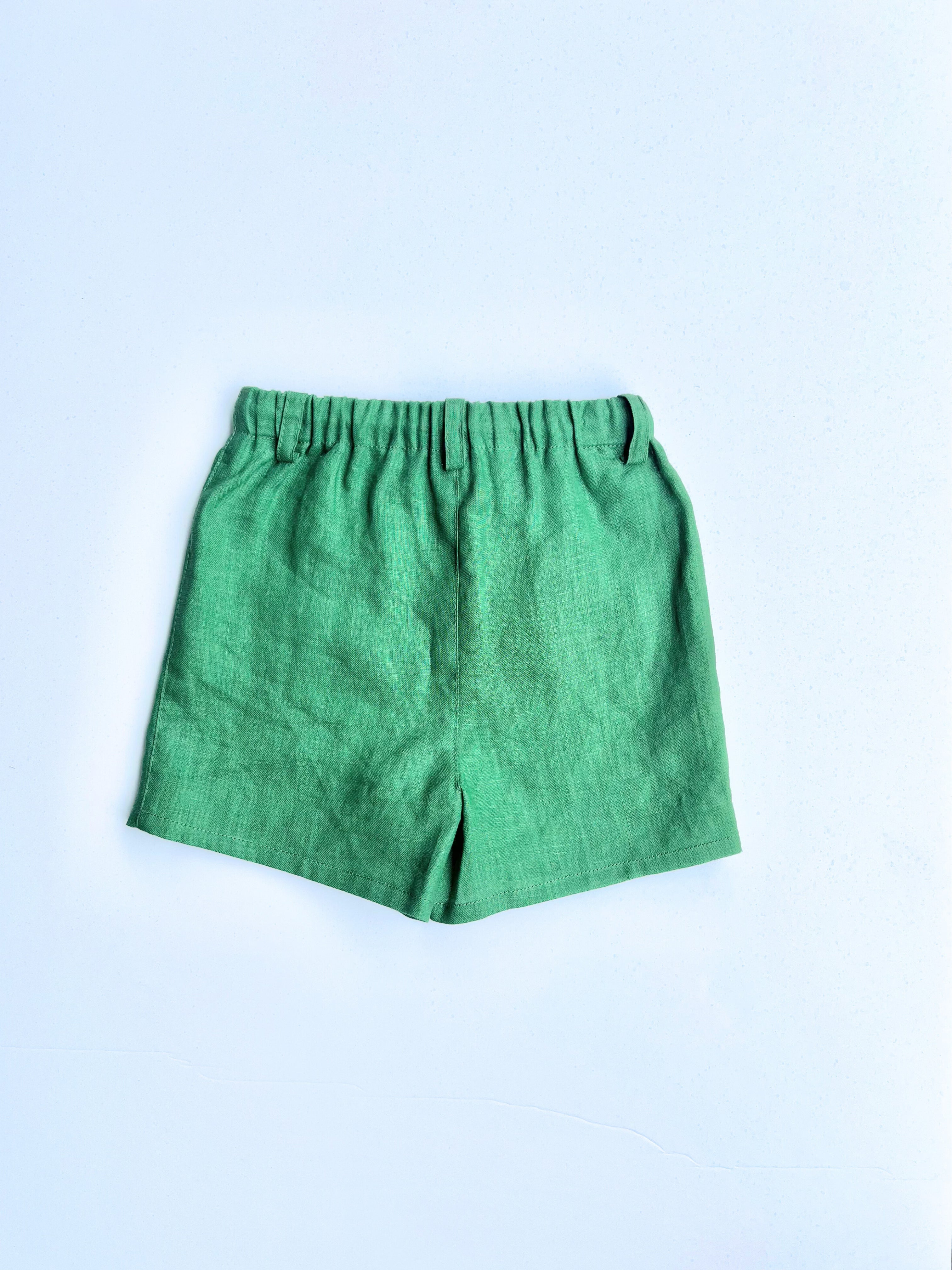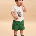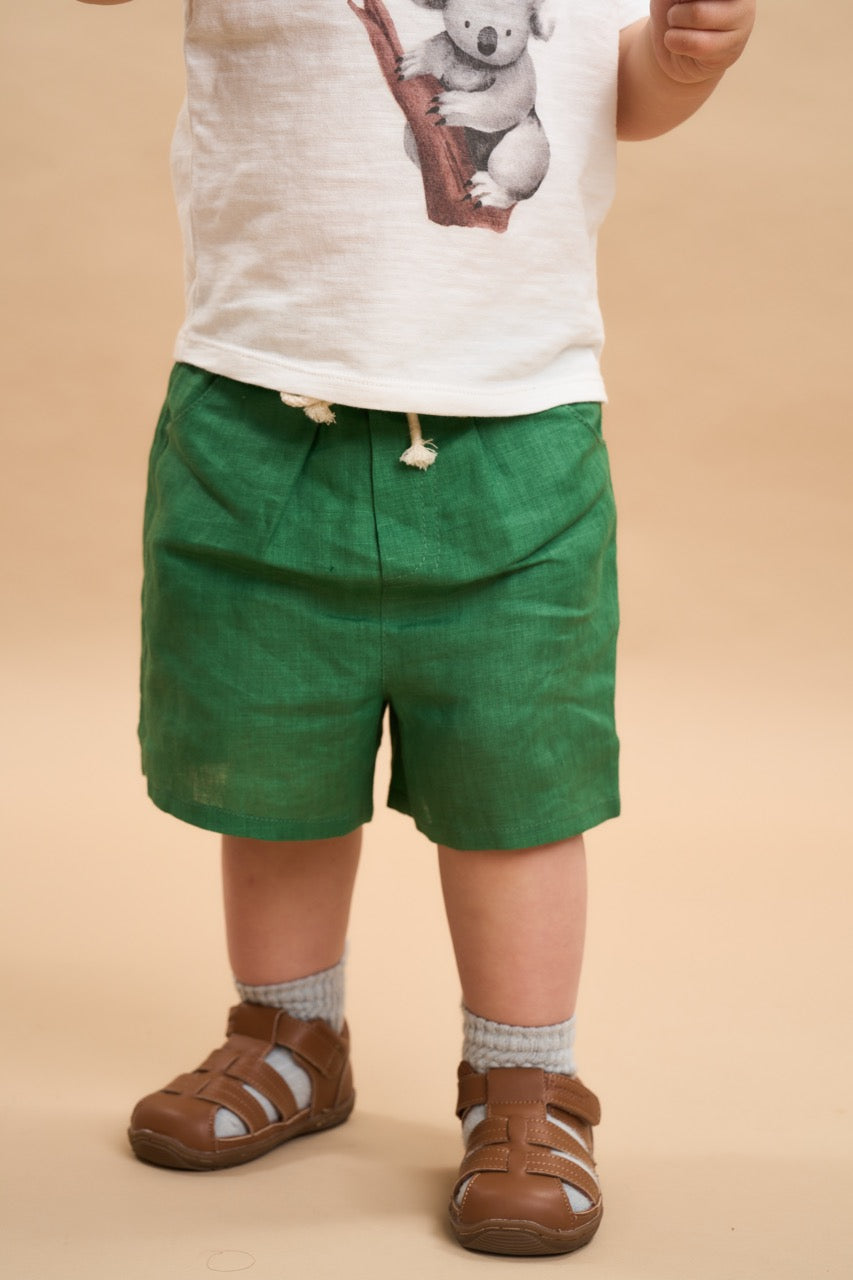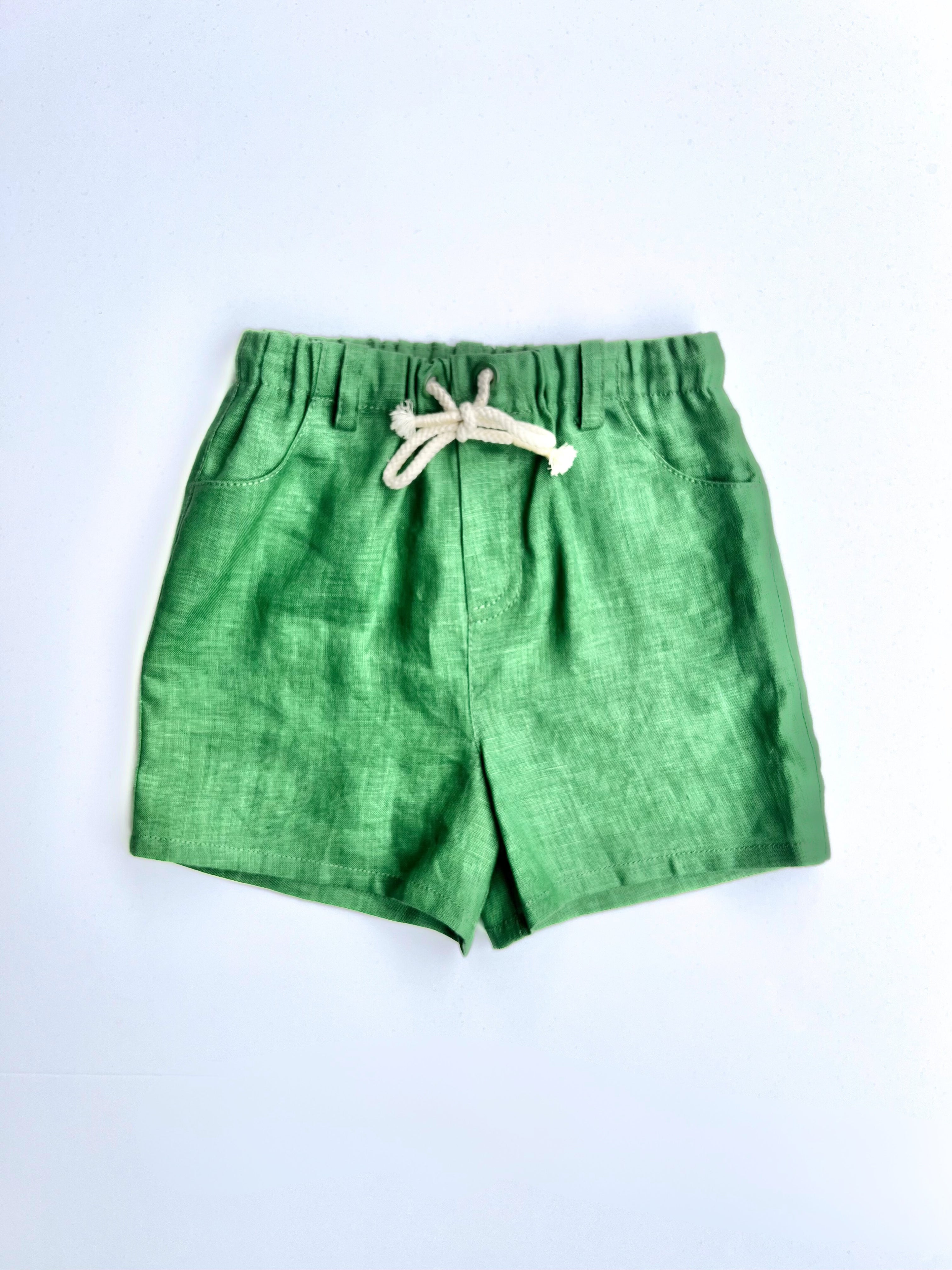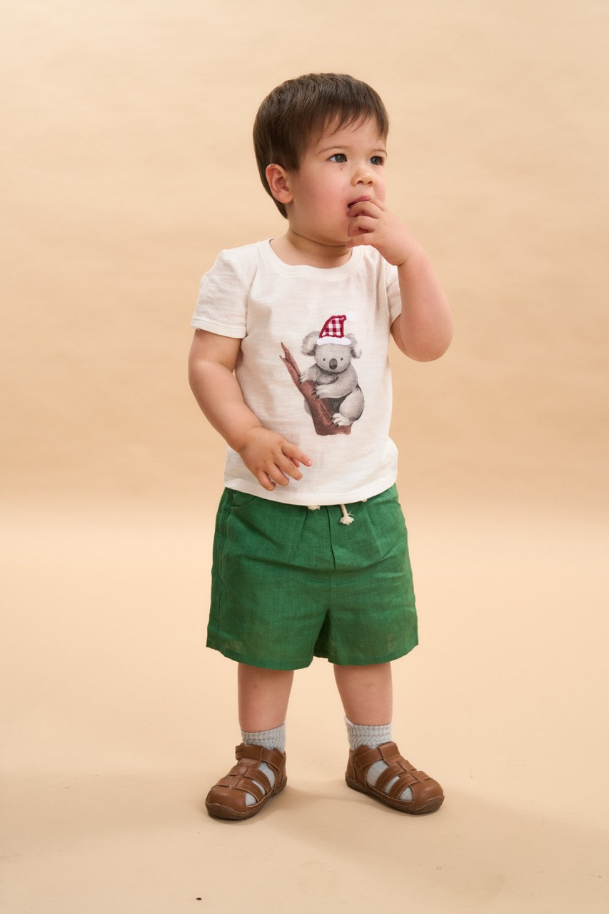 The Ollie Linen Shorts are a laid-back essential made for warm, easy days. Crafted from 100% linen, they’re naturally breathable keeps little ones comfortable as they move and explore. Available in three versatile colourways — classic green, earthy tan, and our festive hand-illustrated print — they’re a wear-everywhere staple for the season.