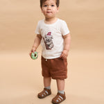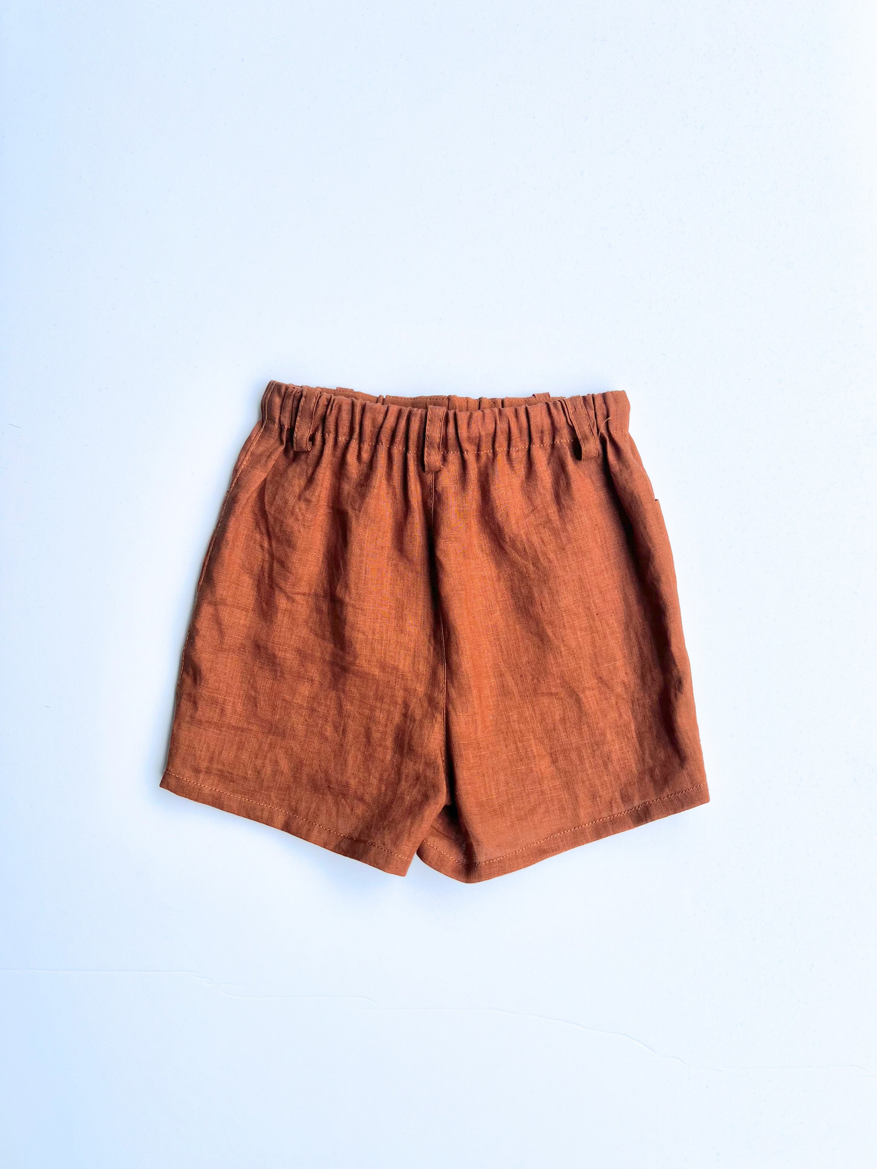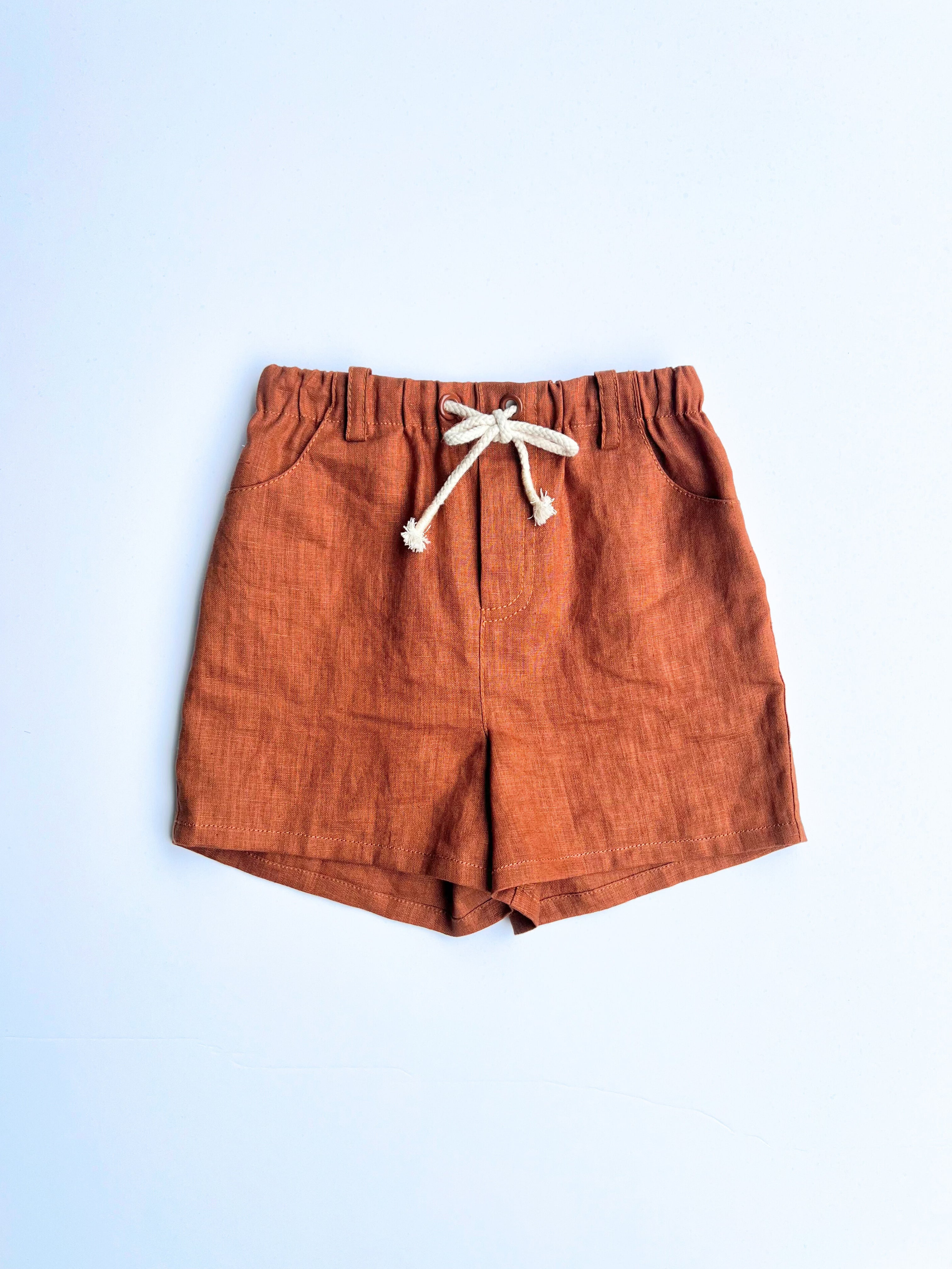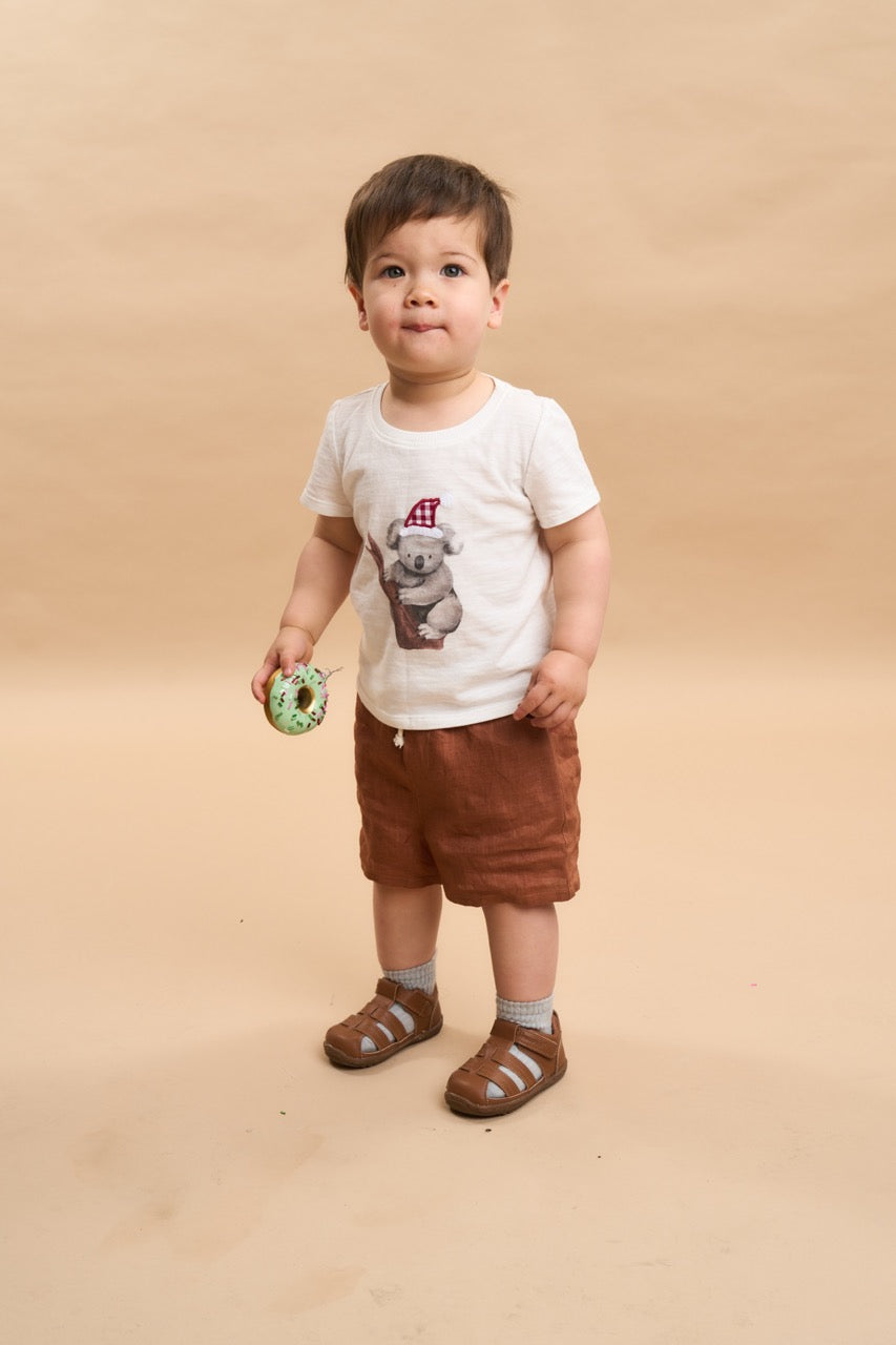 The Ollie Linen Shorts are a laid-back essential made for warm, easy days. Crafted from 100% linen, they’re naturally breathable keeps little ones comfortable as they move and explore. Available in three versatile colourways — classic green, earthy tan, and our festive hand-illustrated print — they’re a wear-everywhere staple for the season.
